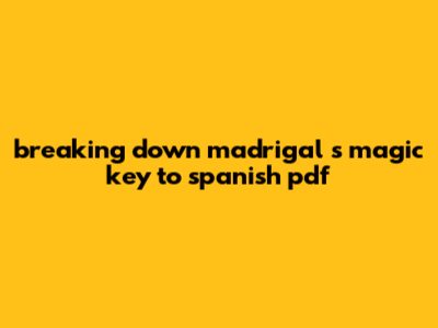 Breaking Down Madrigal's Magic Key To Spanish Pdf