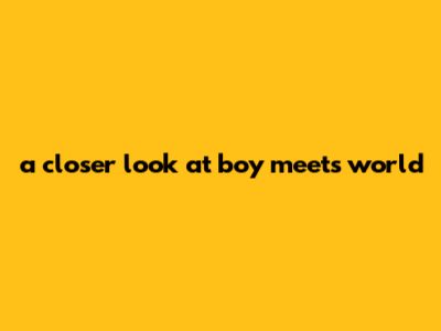 A Closer Look At Boy Meets World