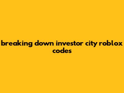 Breaking Down Investor City Roblox Codes